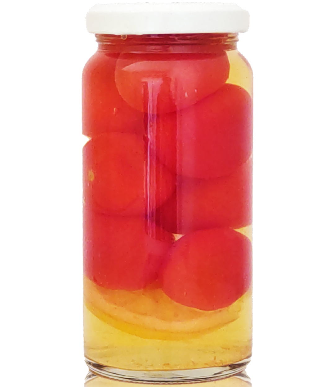 「プチトマトsweetハニーピクルス」は、まさにフルーツのような味わいが楽しめるピクルスです。丁寧に湯剥きをしているため、皮の硬さがなく、プチトマト本来の味わいを存分に味わうことができます。さらに、リンゴ酢と蜂蜜を使用した「sweetピクルス」仕立てにしているため、程よい甘さがあり、プチトマトの酸味とのバランスが絶妙です。